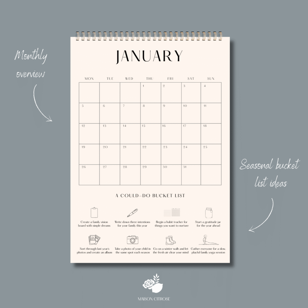 From January’s fresh reset to December’s quiet rest, this calendar helps you move through the year with intention rather than overwhelm. It’s not about doing more but noticing more, savouring more, and creating space for the moments that matter.
